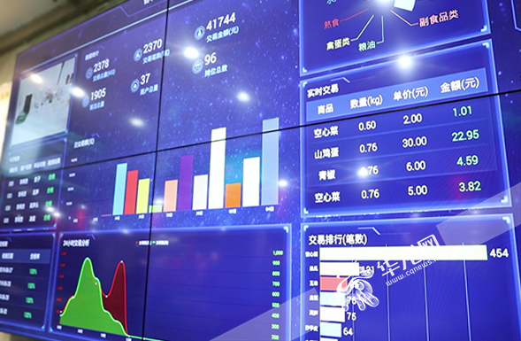 ??數據大屏顯示當天產(chǎn)品交易量、種類(lèi)、價(jià)格等信息。華龍網(wǎng)-新重慶客戶(hù)端記者 謝鵬 攝